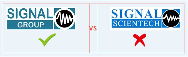英國(guó)“SIGNAL“ 集團(tuán)公司LOGO上的英文內(nèi)容是“SIGNAL GROUP”,而仿冒品牌英文是“SIGNAL SCIENTECH”。