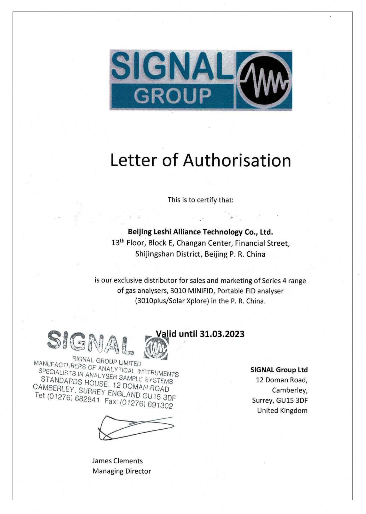 北京樂(lè)氏聯(lián)創(chuàng)科技有限公司(簡(jiǎn)稱(chēng) 樂(lè)氏科技)是英國(guó)SIGNAL GROUP在中國(guó)區(qū)的唯一授權(quán)總代理,全權(quán)負(fù)責(zé)中國(guó)區(qū)產(chǎn)品銷(xiāo)售及技術(shù)服務(wù)工作。